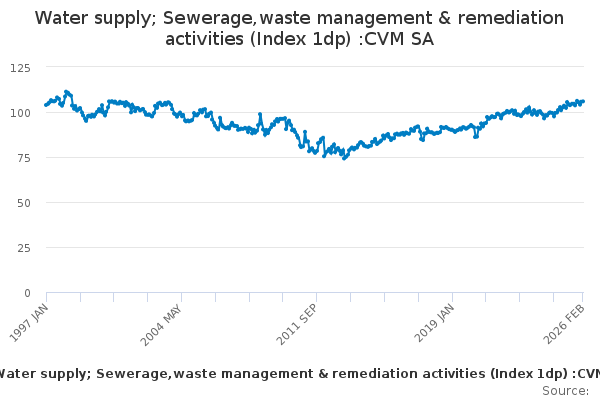 Download this time seriesWater supply; Sewerage,waste management & remediation activities (Index 1dp) :CVM SA