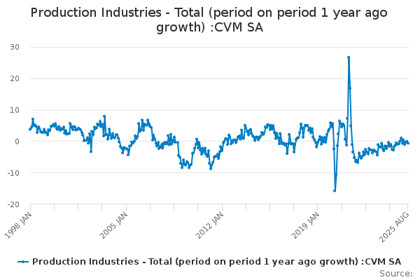 Download this time seriesProduction Industries - Total (period on period 1 year ago growth) :CVM SA