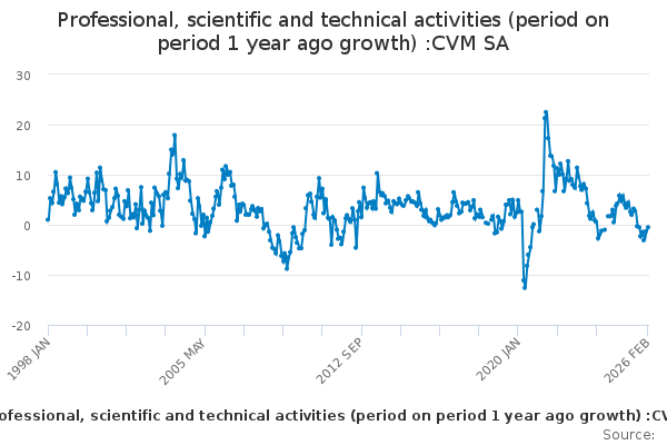 Download this time seriesProfessional, scientific and technical activities (period on period 1 year ago growth) :CVM SA