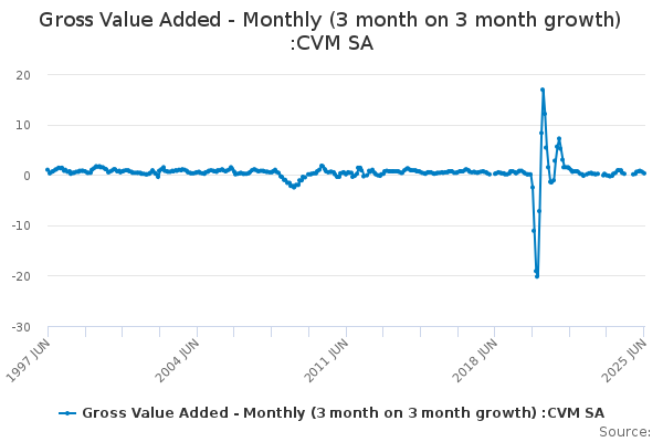 Download this time seriesGross Value Added - Monthly (3 month on 3 month growth) :CVM SA