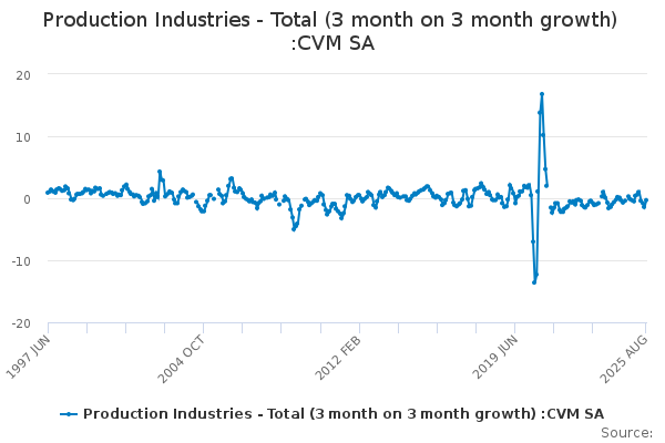 Download this time seriesProduction Industries - Total (3 month on 3 month growth) :CVM SA