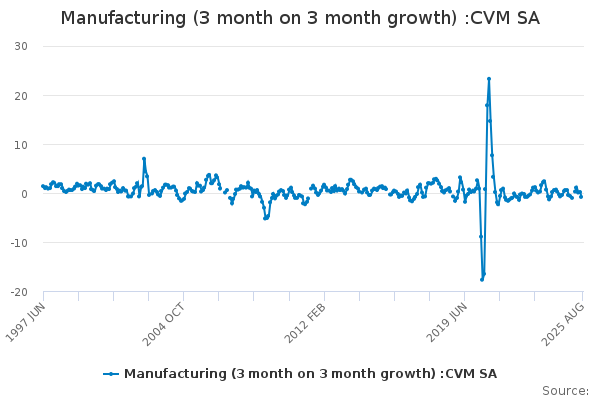 Download this time seriesManufacturing (3 month on 3 month growth) :CVM SA