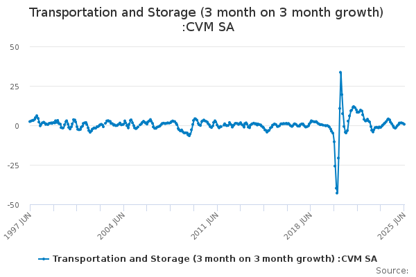 Download this time seriesTransportation and Storage (3 month on 3 month growth) :CVM SA