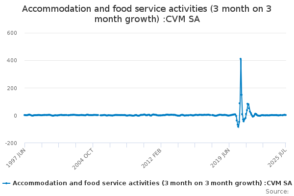 Download this time seriesAccommodation and food service activities (3 month on 3 month growth) :CVM SA