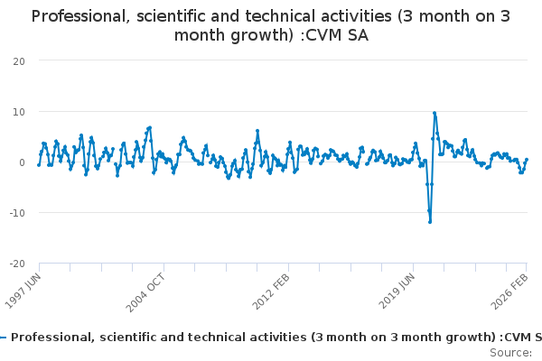 Download this time seriesProfessional, scientific and technical activities (3 month on 3 month growth) :CVM SA