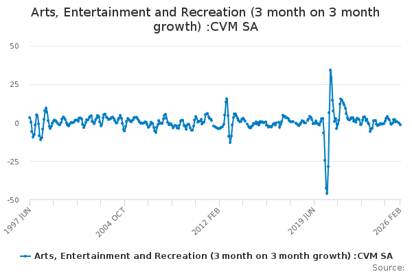 Download this time seriesArts, Entertainment and Recreation (3 month on 3 month growth) :CVM SA