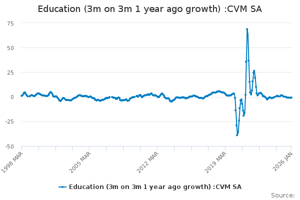 Download this time seriesEducation (3m on 3m 1 year ago growth) :CVM SA