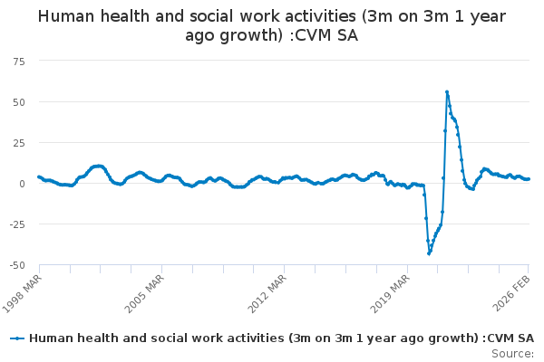 Download this time seriesHuman health and social work activities (3m on 3m 1 year ago growth) :CVM SA