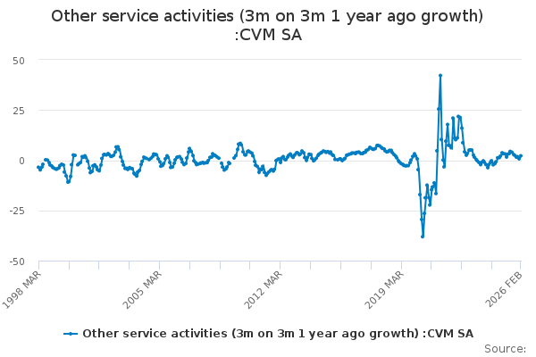 Download this time seriesOther service activities (3m on 3m 1 year ago growth) :CVM SA