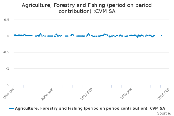 Download this time seriesAgriculture, Forestry and Fishing (period on period contribution) :CVM SA