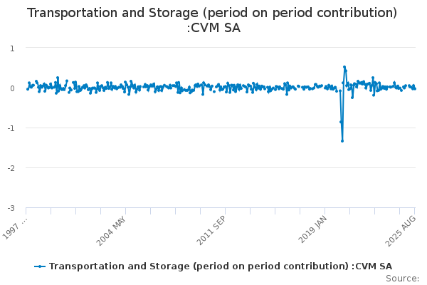 Download this time seriesTransportation and Storage (period on period contribution) :CVM SA