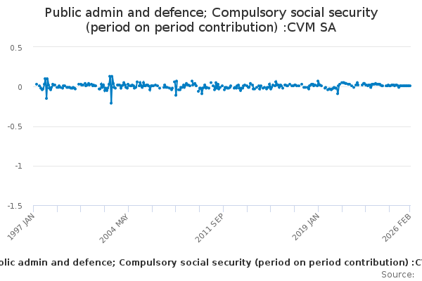 Download this time seriesPublic admin and defence; Compulsory social security (period on period contribution) :CVM SA