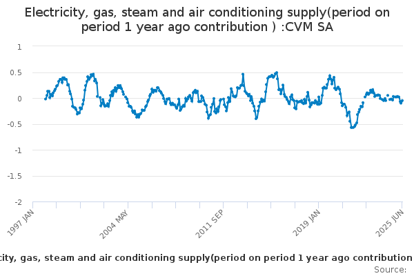 Download this time seriesElectricity, gas, steam and air conditioning supply(period on period 1 year ago contribution ) :CVM SA