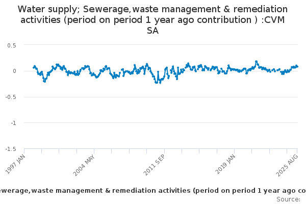 Download this time seriesWater supply; Sewerage,waste management & remediation activities (period on period 1 year ago contribution ) :CVM SA