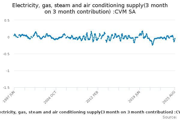Download this time seriesElectricity, gas, steam and air conditioning supply(3 month on 3 month contribution) :CVM SA