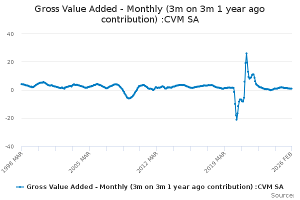 Download this time seriesGross Value Added - Monthly (3m on 3m 1 year ago contribution) :CVM SA