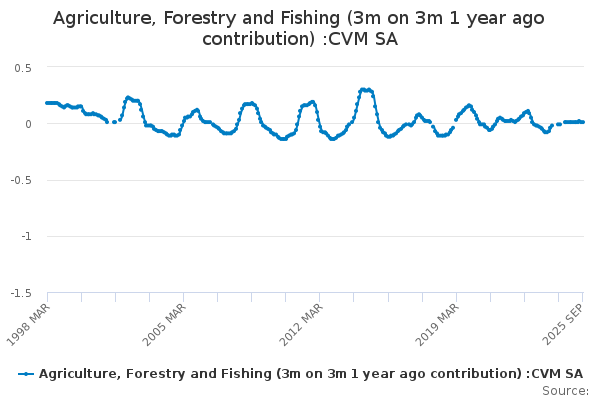 Download this time seriesAgriculture, Forestry and Fishing (3m on 3m 1 year ago contribution) :CVM SA