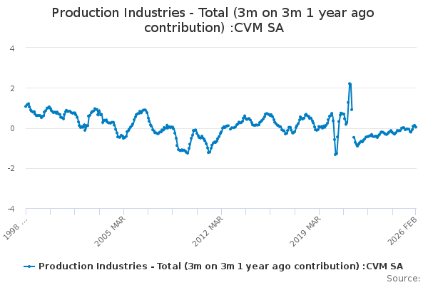 Download this time seriesProduction Industries - Total (3m on 3m 1 year ago contribution) :CVM SA