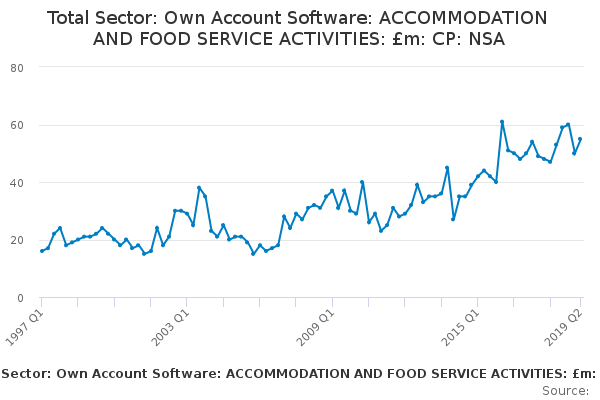 Download this time seriesTotal Sector: Own Account Software: ACCOMMODATION AND FOOD SERVICE ACTIVITIES: £m: CP: NSA