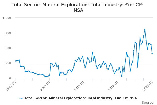 Download this time seriesTotal Sector: Mineral Exploration: Total Industry: £m: CP: NSA