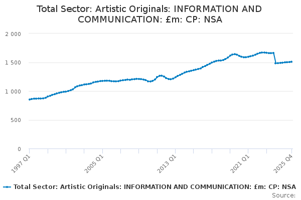 Download this time seriesTotal Sector: Artistic Originals: INFORMATION AND COMMUNICATION: £m: CP: NSA