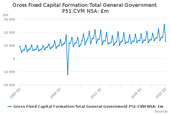 Download this time seriesGross Fixed Capital Formation:Total General Government P51:CVM NSA: £m