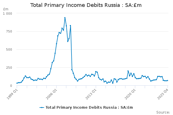 Download this time seriesTotal Primary Income Debits Russia : SA:£m