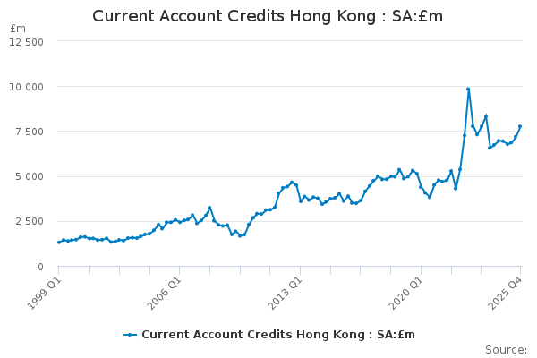 Download this time seriesCurrent Account Credits Hong Kong : SA:£m