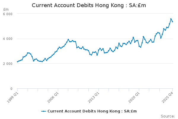 Download this time seriesCurrent Account Debits Hong Kong : SA:£m