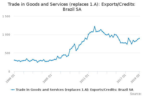 Download this time seriesTrade in Goods and Services (replaces 1.A): Exports/Credits: Brazil SA