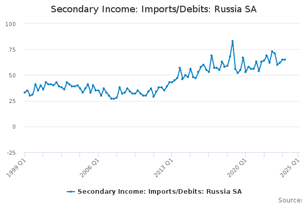 Download this time seriesSecondary Income: Imports/Debits: Russia SA