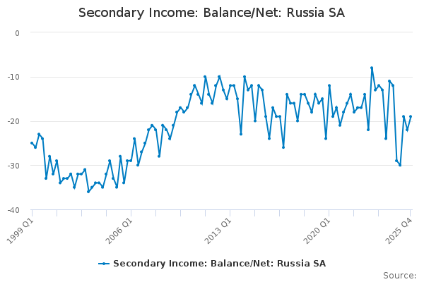 Download this time seriesSecondary Income: Balance/Net: Russia SA