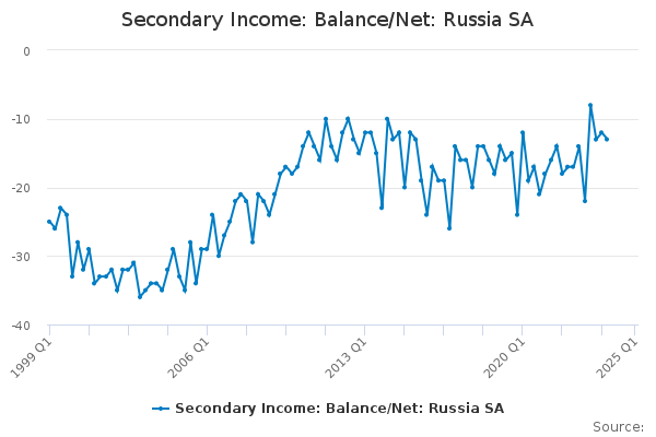 Download this time seriesSecondary Income: Balance/Net: Russia SA
