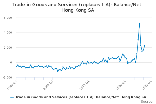 Download this time seriesTrade in Goods and Services (replaces 1.A): Balance/Net: Hong Kong SA