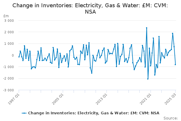 Download this time seriesChange in Inventories: Electricity, Gas & Water: £M: CVM: NSA
