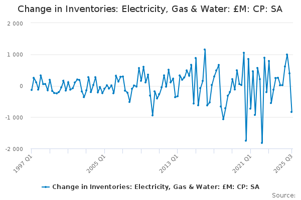 Download this time seriesChange in Inventories: Electricity, Gas & Water: £M: CP: SA