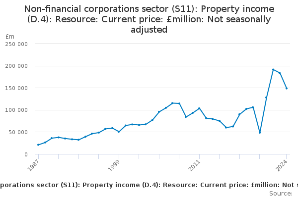 Download this time seriesNon-financial corporations sector (S11): Property income (D.4): Resource: Current price: £million: Not seasonally adjusted