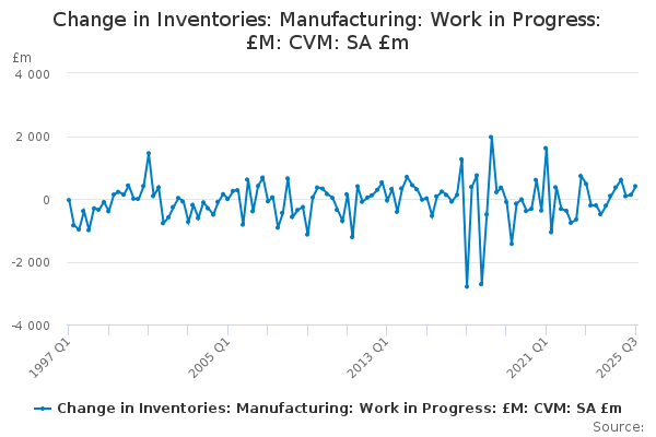Download this time seriesChange in Inventories: Manufacturing: Work in Progress: £M: CVM: SA £m