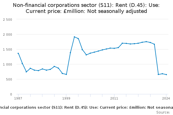 Download this time seriesNon-financial corporations sector (S11): Rent (D.45): Use: Current price: £million: Not seasonally adjusted