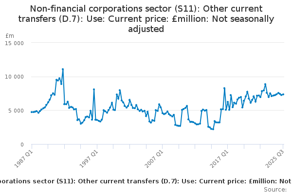 Download this time seriesNon-financial corporations sector (S11): Other current transfers (D.7): Use: Current price: £million: Not seasonally adjusted