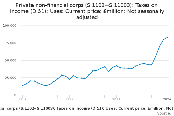 Download this time seriesPrivate non-financial corps (S.1102+S.11003): Taxes on income (D.51): Uses: Current price: £million: Not seasonally adjusted