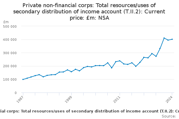 Download this time seriesPrivate non-financial corps: Total resources/uses of secondary distribution of income account (T.II.2): Current price: £m: NSA