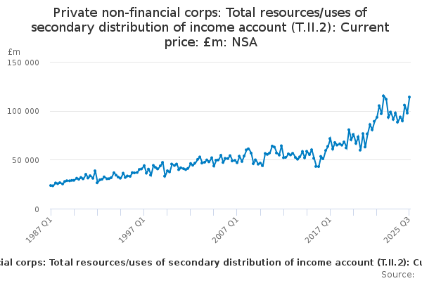 Download this time seriesPrivate non-financial corps: Total resources/uses of secondary distribution of income account (T.II.2): Current price: £m: NSA