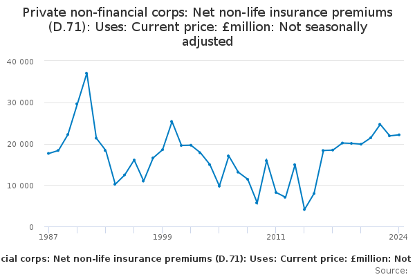 Download this time seriesPrivate non-financial corps: Net non-life insurance premiums (D.71): Uses: Current price: £million: Not seasonally adjusted