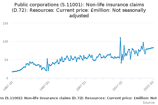 Download this time seriesPublic corporations (S.11001): Non-life insurance claims (D.72): Resources: Current price: £million: Not seasonally adjusted
