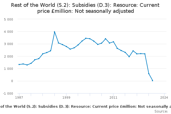 Download this time seriesRest of the World (S.2): Subsidies (D.3): Resource: Current price £million: Not seasonally adjusted