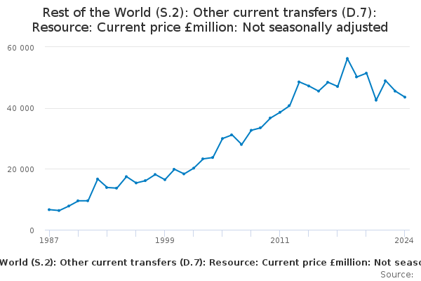 Download this time seriesRest of the World (S.2): Other current transfers (D.7): Resource: Current price £million: Not seasonally adjusted