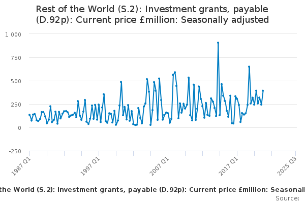 Download this time seriesRest of the World (S.2): Investment grants, payable (D.92p): Current price £million: Seasonally adjusted