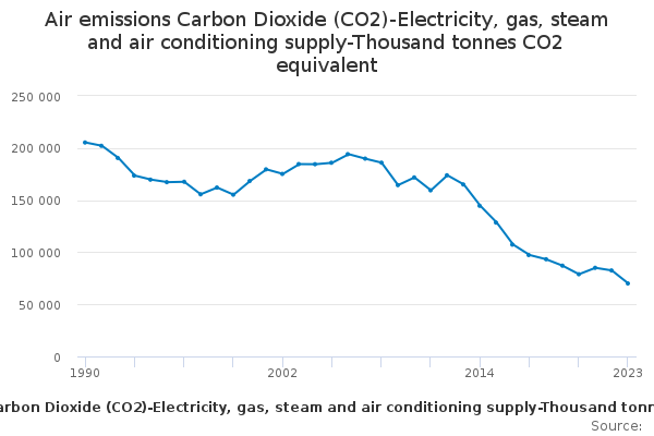 Download this time seriesAir emissions Carbon Dioxide (CO2)-Electricity, gas, steam and air conditioning supply-Thousand tonnes CO2 equivalent