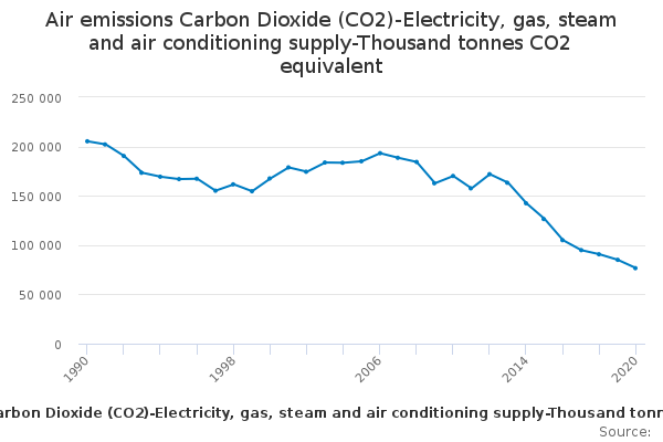Download this time seriesAir emissions Carbon Dioxide (CO2)-Electricity, gas, steam and air conditioning supply-Thousand tonnes CO2 equivalent